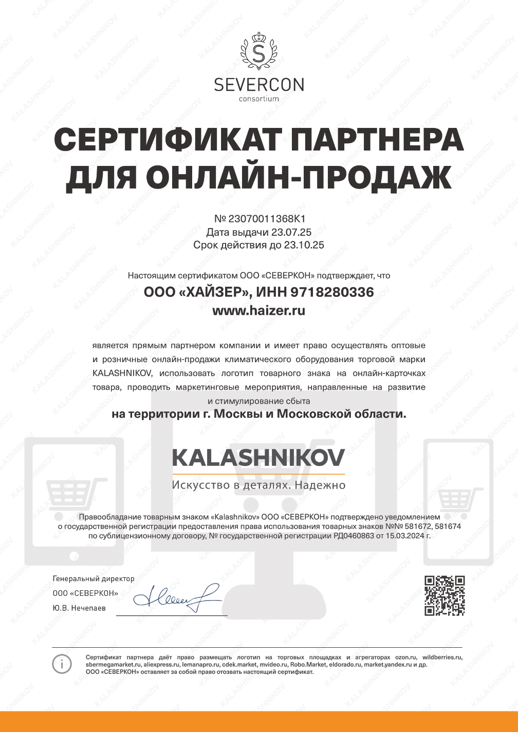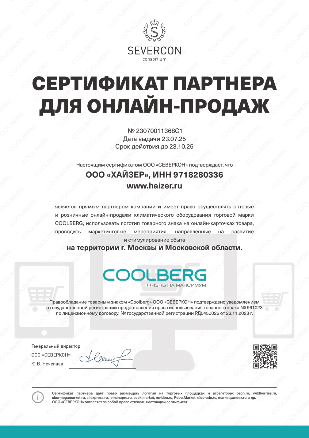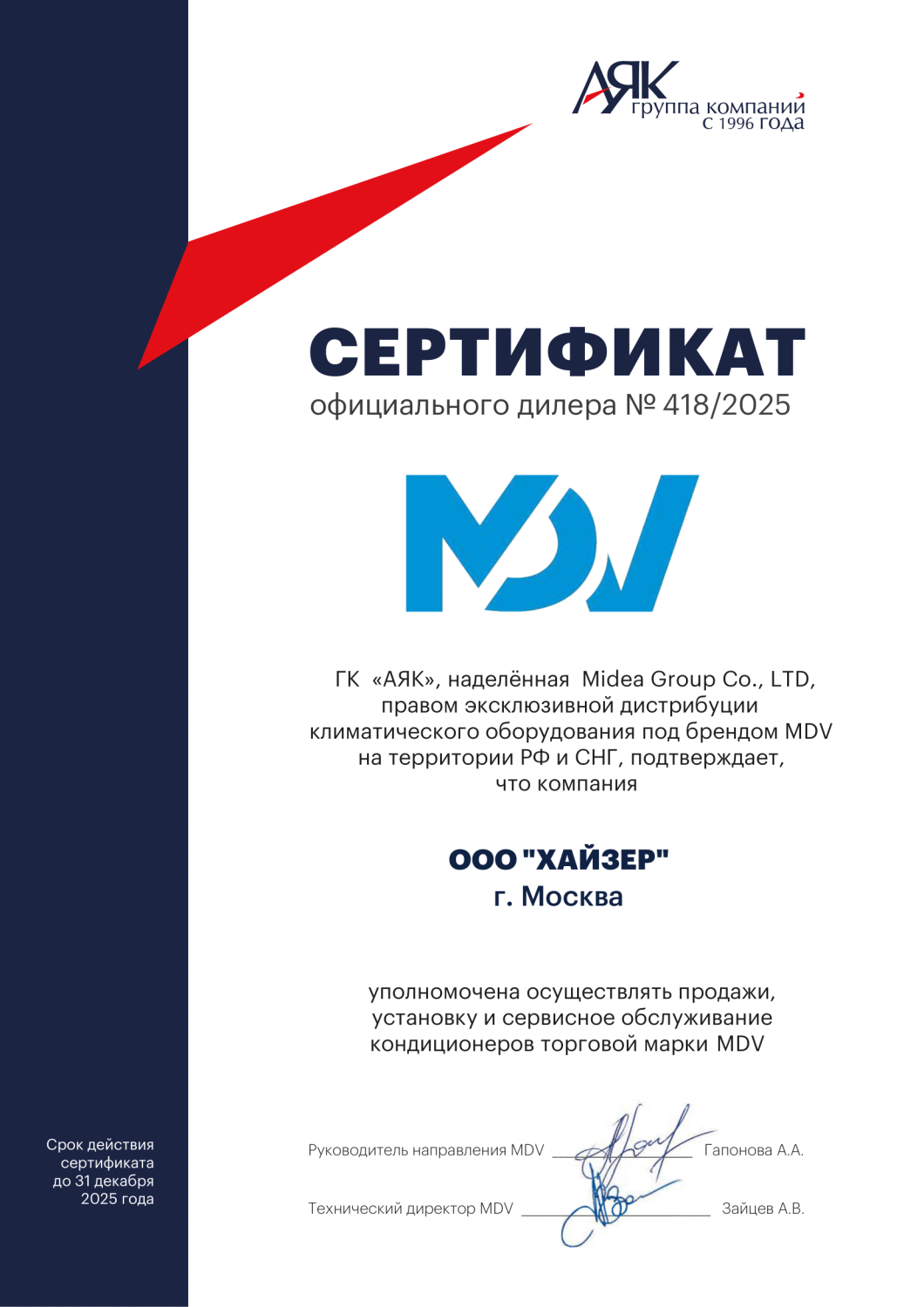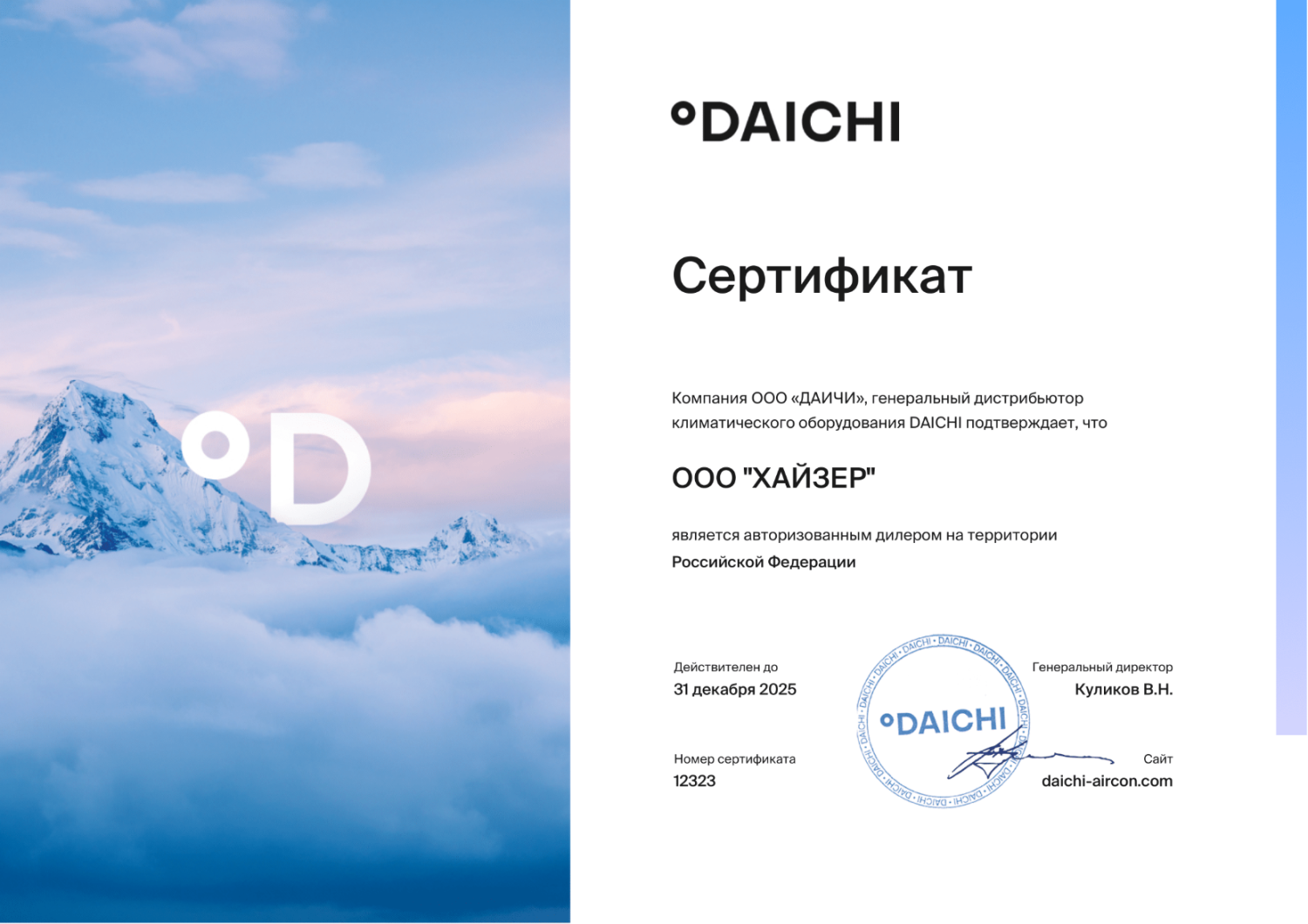 Сертификат подтверждает компетенцию компании на установку, обслуживание оборудования, продажу и ремонт.